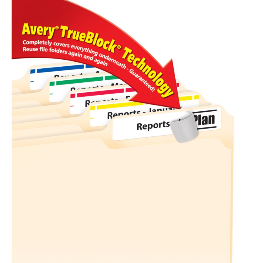Avery TrueBlock Laser/Inkjet File Folder Labels, 2/3" x 3 7/16 ... Get Avery TrueBlock Laser/Inkjet File Folder Labels, 2/3" x 3 7/16", Assorted Colors, 750 Labels/Pack (5266) fast and with free shipping on qualifying orders at Staples.